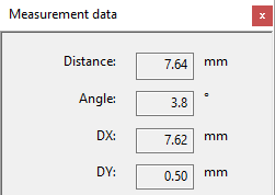 The measured values are displayed in the status bar while measuring. After left-clicking the second time, the results are also displayed at the bottom left of the Measured values window. They can be copied out of this window if required.