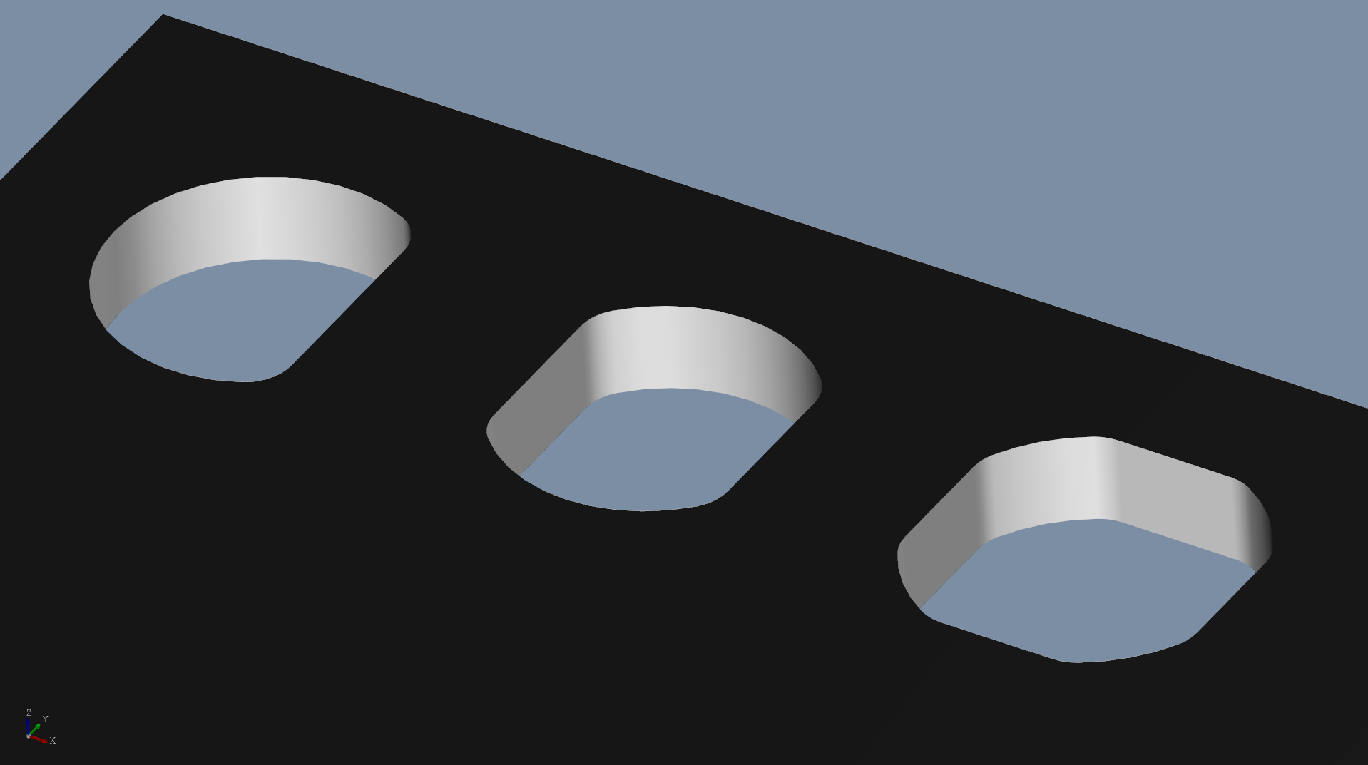 A D-hole is a cut-out in the shape of a circular segment. This drill hole is used as a mounting hole for BNC sockets, for example. In addition, double and quadruple D-holes with a corresponding number of flat areas can be selected.