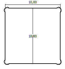 Since all the elements will be milled, inner corners are always rounded. Inner corners with “Radius = 0” are produced by using the smallest available cutter (diameter = 1 mm) to reach into the material and round them out: