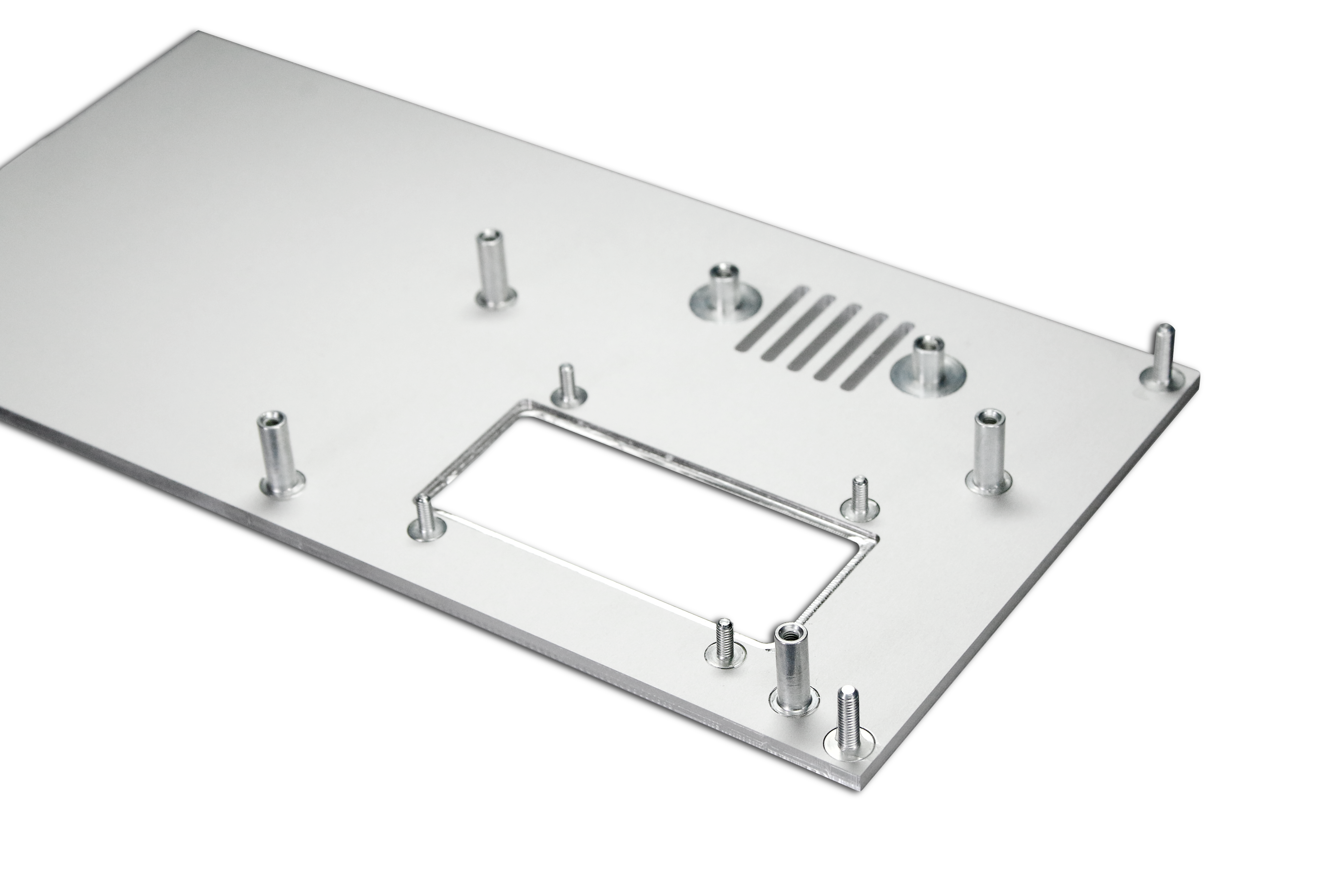 Studs and standoffs are available as fastening elements in Front Panel Designer in a standard version and a version for larger loads. The standard studs and standoffs can be bonded or pressed. Passivated nuts are offered as well.