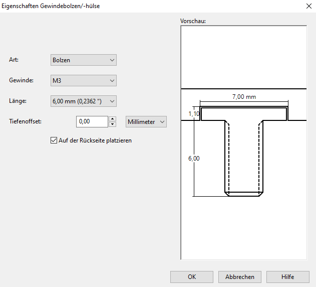 Select a stud on the reverse side with a 2.5-mm thread and a length of 6 mm.
