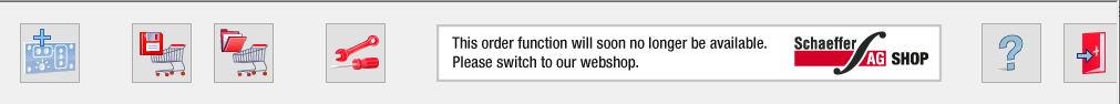 The main window in the ordering program is divided into a toolbar and a workspace containing six tabs.